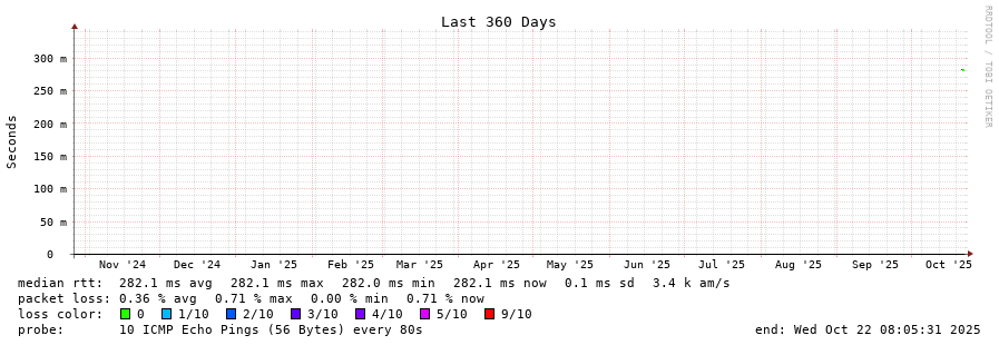 traceroute to 85.114.46.237 (85.114.46.237), 30 hops max, 60 byte packets - Generated at 2025-10-22 08:00:01