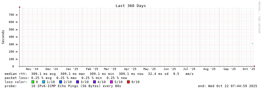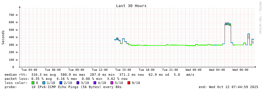 traceroute to 2a02:2f05:2113:7f00:220:4aff:fee0:220f (2a02:2f05:2113:7f00:220:4aff:fee0:220f), 30 hops max, 80 byte packets - Generated at 2025-10-22 05:30:01
