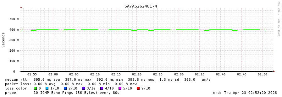 50. Max Roundtrip Time 0.399 seconds