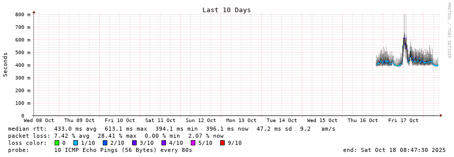 traceroute to 190.104.210.9 (190.104.210.9), 30 hops max, 60 byte packets - Generated at 2025-10-18 08:45:01