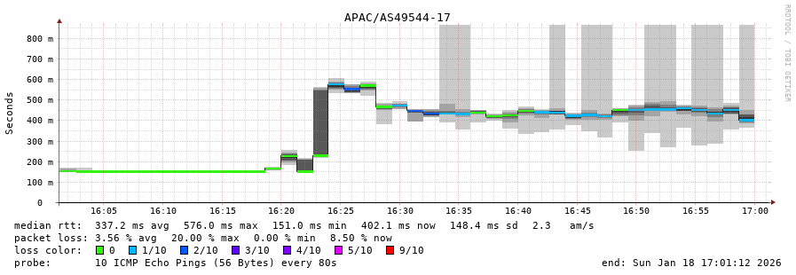 17. Median RTT 0.460 seconds