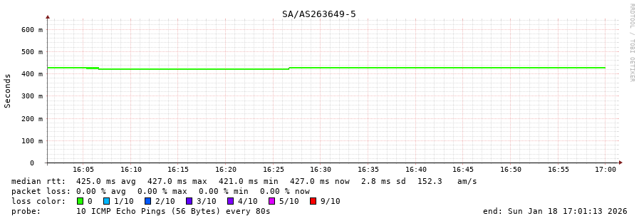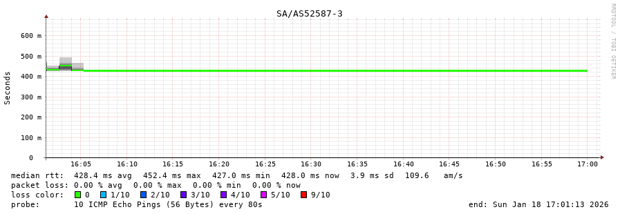 50. Median RTT 0.426 seconds